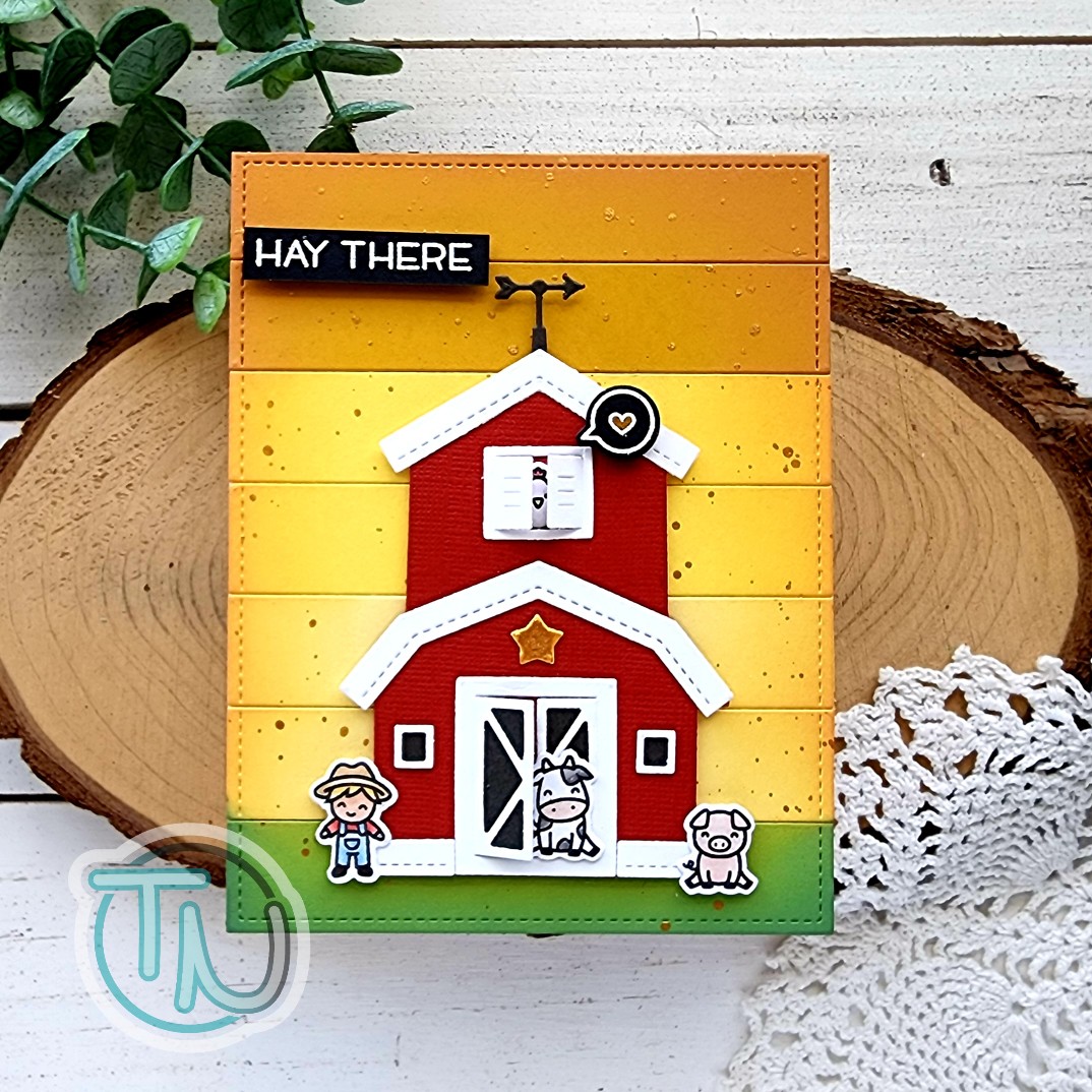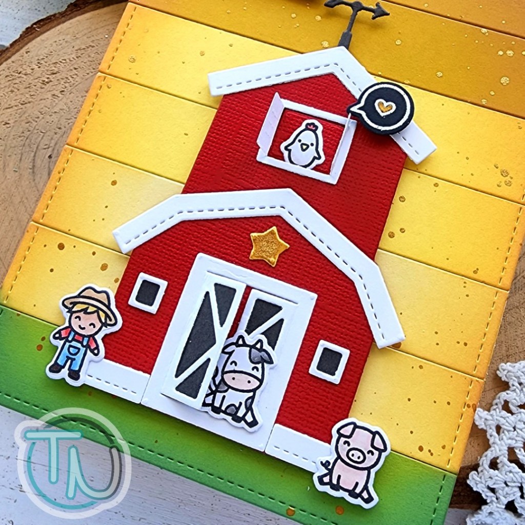 Hi there! I’m popping in this afternoon to share a card I created last night with the Lawn Fawn Tiny Farm cuties and the Build-a-Barn dies. I just added these to my stash and had so much fun playing with them! I can’t wait to make a reveal wheel card with them next.
