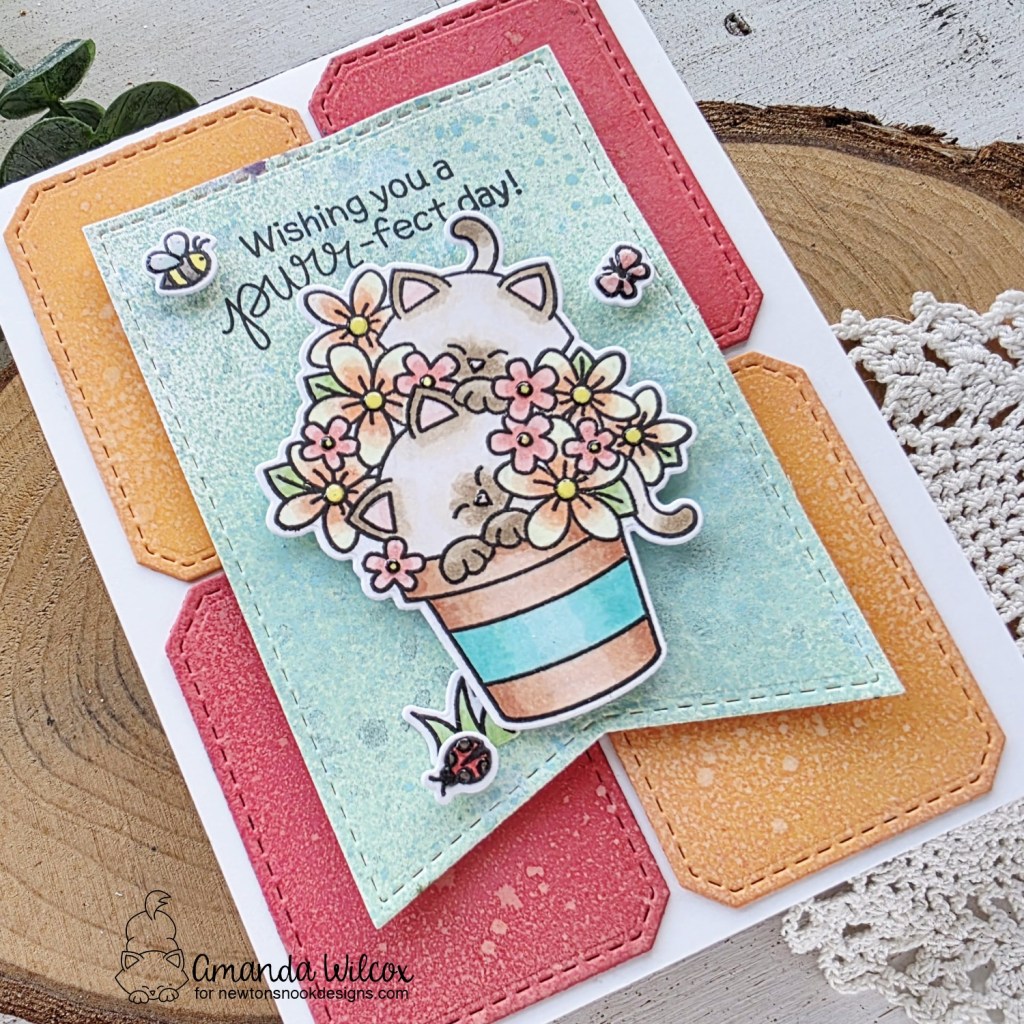 Happy Thursday everyone! I’m happy to be on the Newton’s Nook blog today sharing another card using bits from the new release. Something about the color palette in the new paper pad really spoke to me and I just ran with it. I loved how they went together and the types of colors just made me happy to create. Needless to say, today’s card follows those same colors again. Yay!
