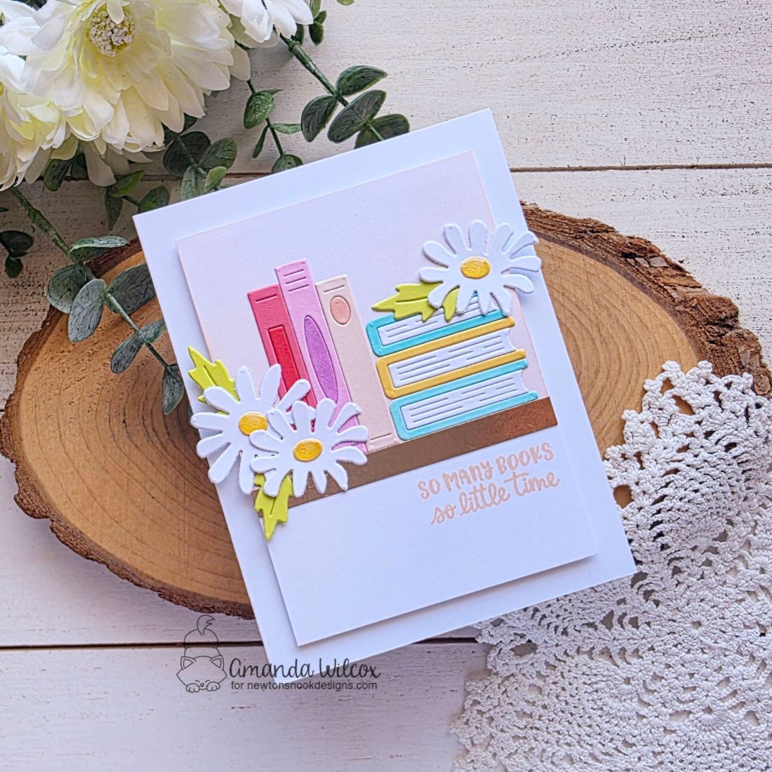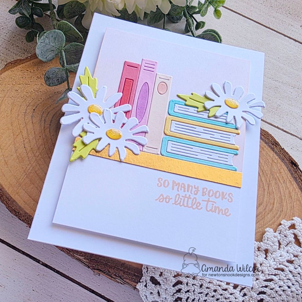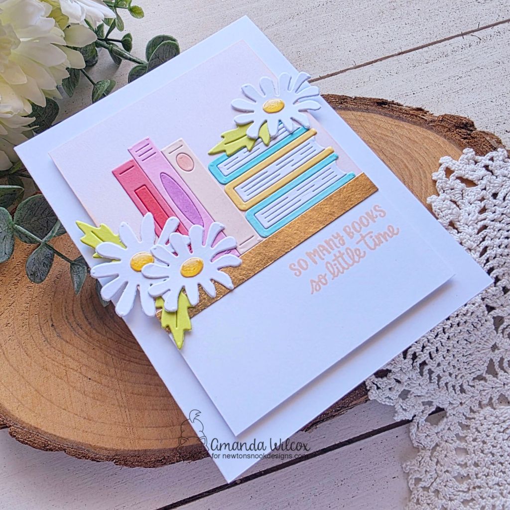 Hello everyone! I’m over on the Newton’s Nook blog today with a fun, book-themed card that’s all die cuts with one stamped sentiment. I recognize that it’s summer and hot and not everyone has air conditioning. If you color with materials like copic markers that are pressurized, it makes it difficult to accomplish anything when the temperatures rise.