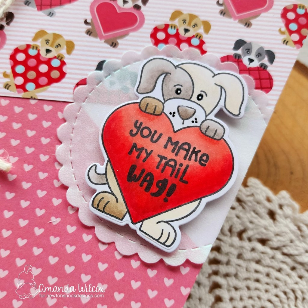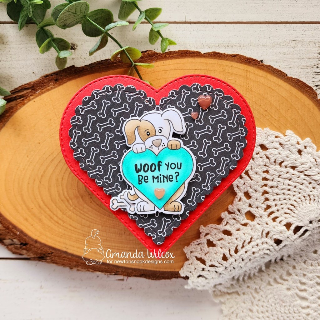 I assembled my box with liquid glue, then popped the scalloped heart up with foam tape. I adhered the puppy with foam squares and used liquid glue for the bones.