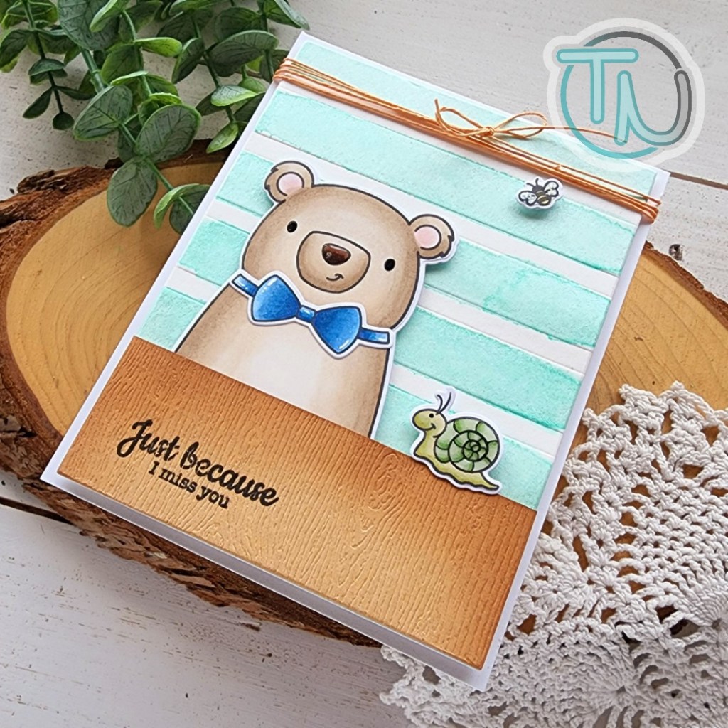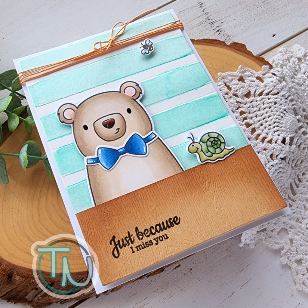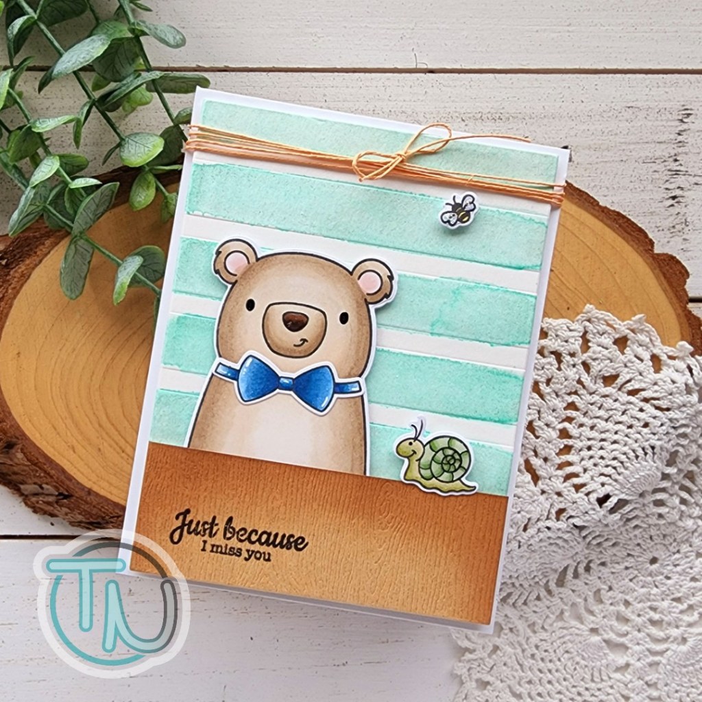 When the paint was dry, I popped it up on a white card base with foam tape and added my images and sentiment with foam squares and strips.