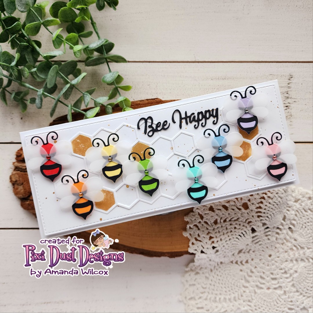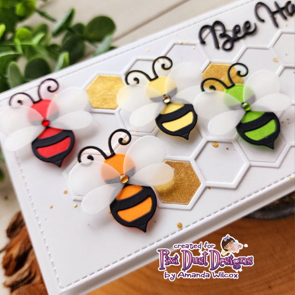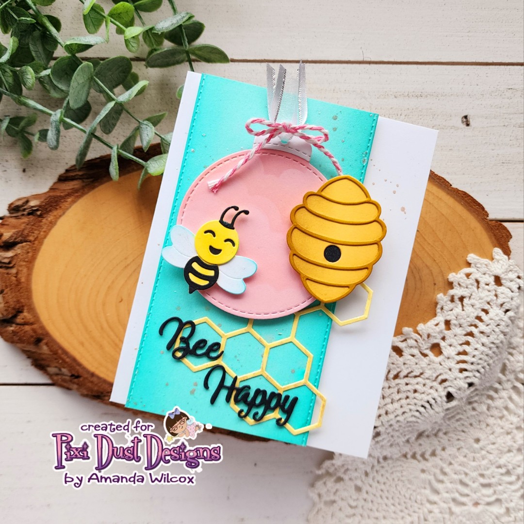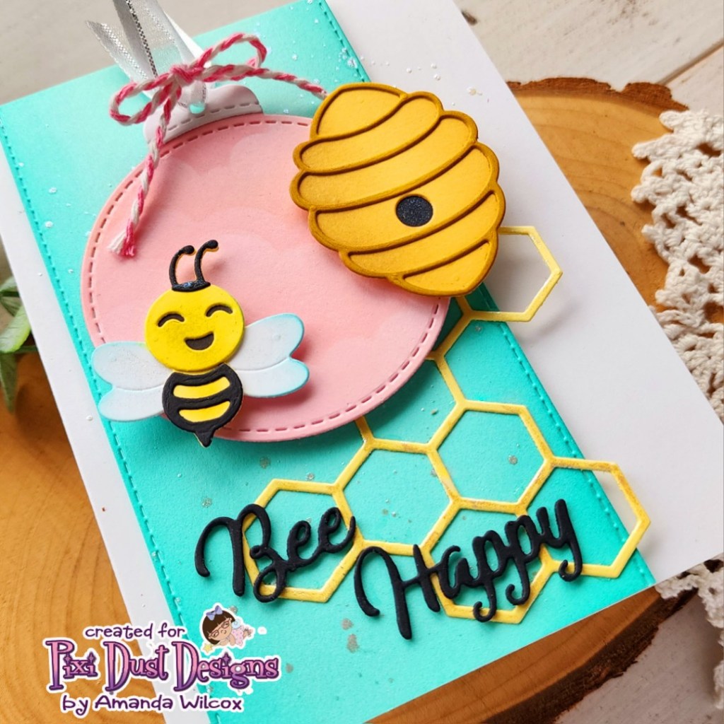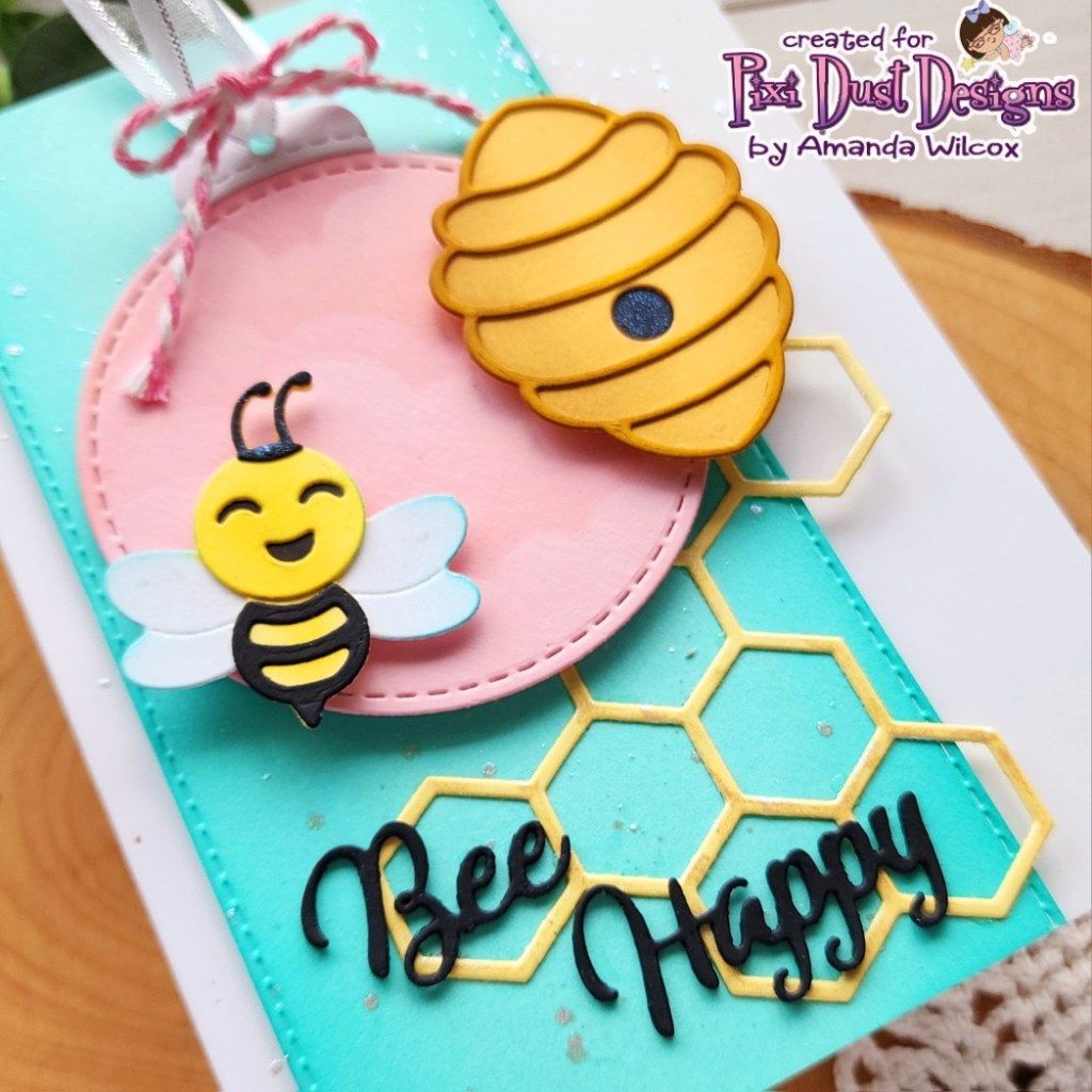 Welcome everyone. I’m so happy you’re here today. I’m back with a second card featuring the Pixi Dust Designs Bee Happy die set. Today I’m pairing it with one of their awesome tag dies and finding A2 uses for my slimline dies as well!