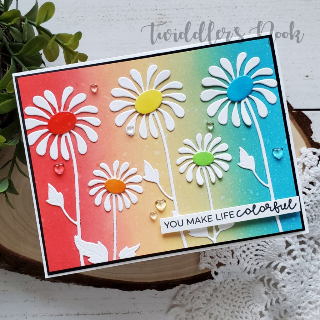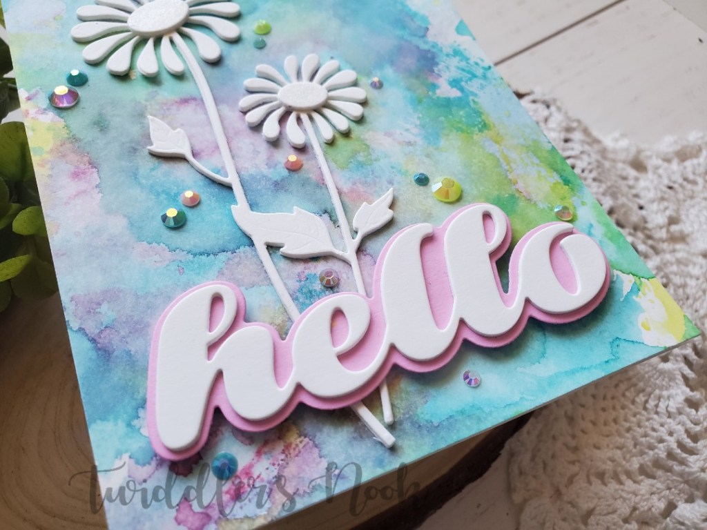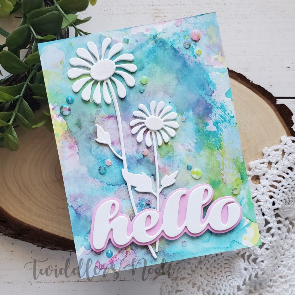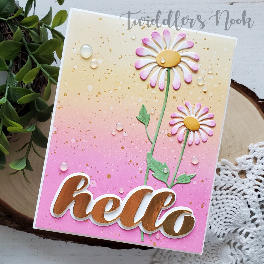 Well, hello there…again! 😉 Today I’m sharing yet another way I thought to use the Poppystamps Delightful Daisy dies paired with the Luscious Script Hello. I absolutely love this sentiment die! You’ll be seeing a lot of it, I can already tell!
