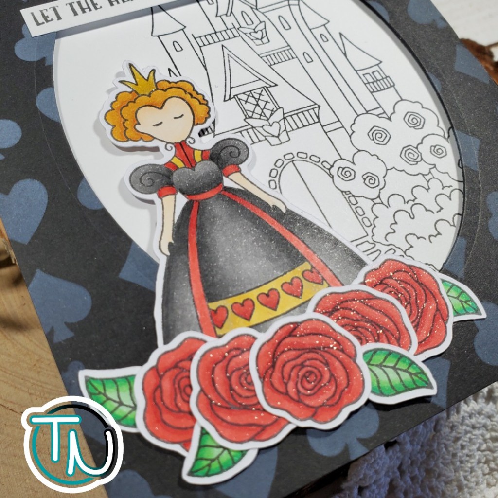 I kept the finishing touches on this card fairly simple – glossy accents on the queen’s crown and Wink of Stella glitter brush pen to all the roses.