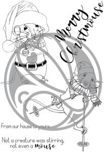 My mouse is slaying the slopes all bundled up in his cute scarf! I used the new Light Me Up stencil for the snowflakes in the background, then cut some snow hills and topped them with blue stickles for a glittery texture. I heat embossed my sentiment in silver and popped up my mouse with foam squares. Some small finishing touches on this card were Nuvo Crystal Drops in morning dew among the snowflakes, Wink of Stella on the hat and glossy accents on the mouse’s little nose.