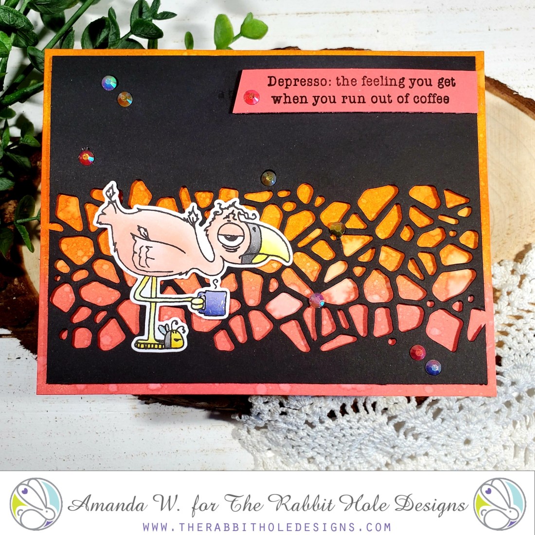 Hey! I’m over at The Rabbit Hole Designs blog today with this awesome caffeinated flamingo card. I have been playing with distress ink backgrounds lately and when this one was finished I knew I wanted to try a flamingo with it.