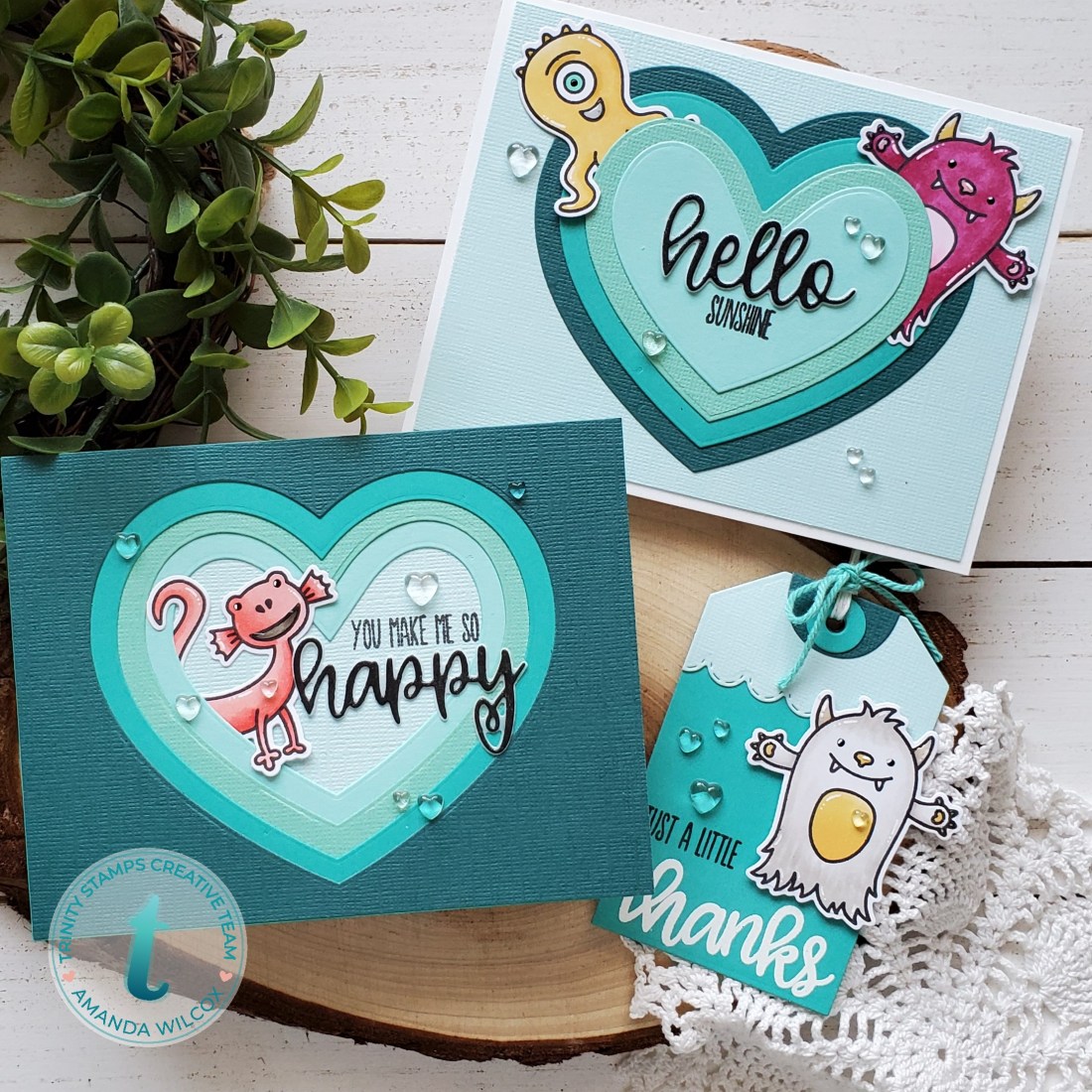 I used a plethora of products from both Trinity Stamps and Heffy Doodle to create these cute projects! They work so well together and are so fun to play with!