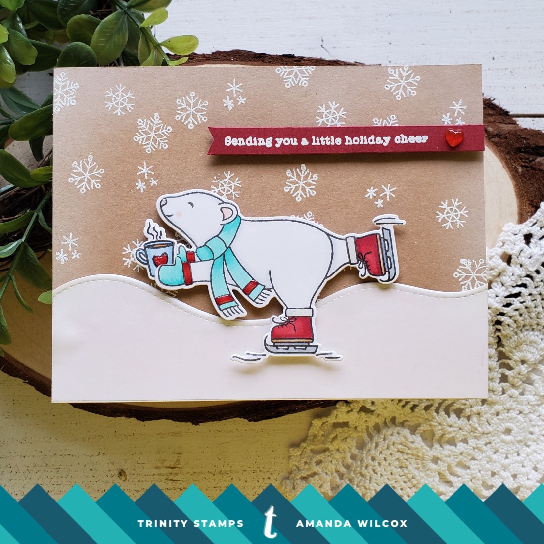 I have been dying to ink this super cute polar bear up from Trinity Stamps Have an Ice Day since it released. I love how you can make him hold multiple different things and the sentiments in the set are fabulous too!